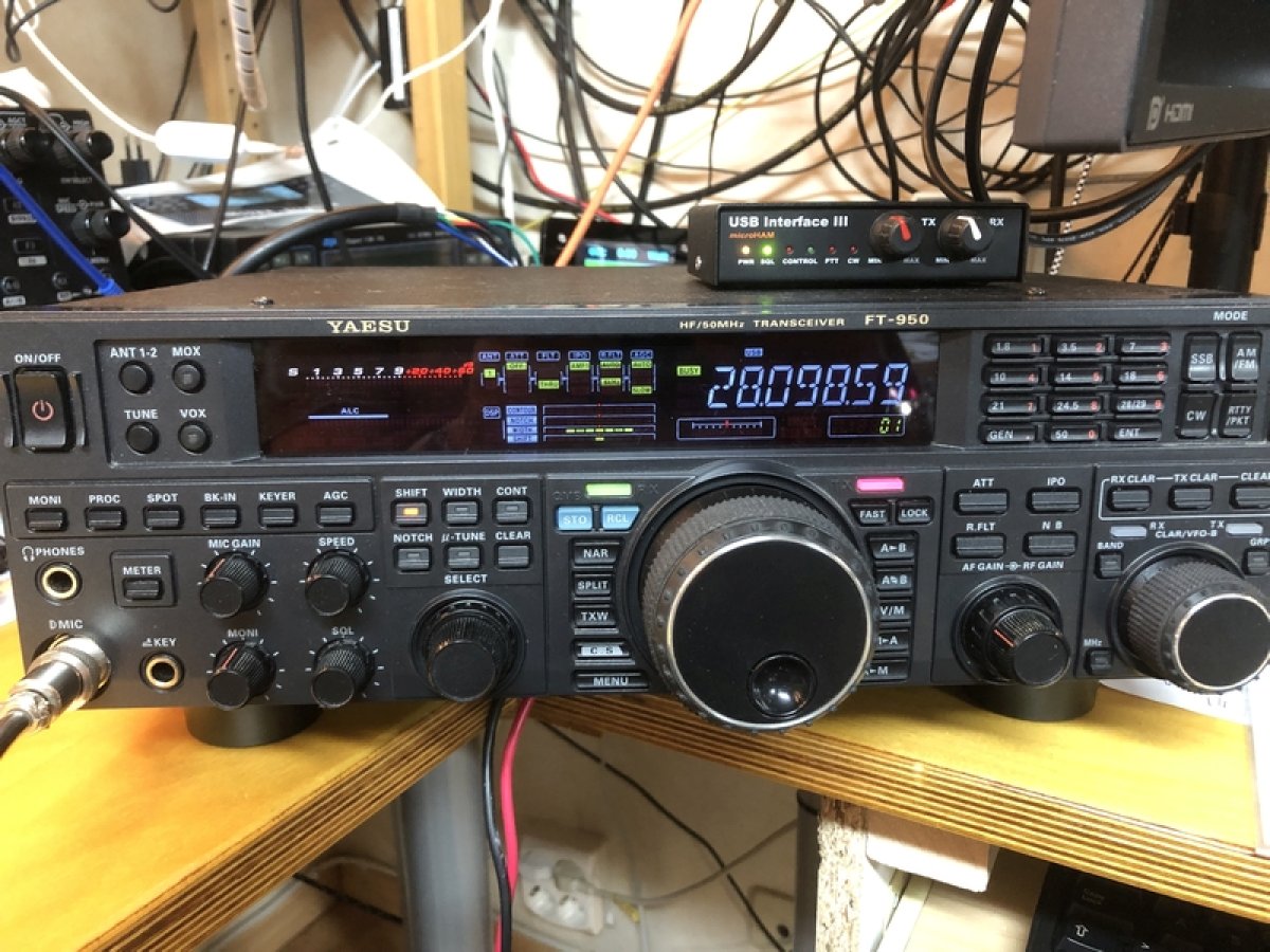 En komplett station med Microham USB III + RF space IF-kort, mikrofon, kablar, manualer m.m.
